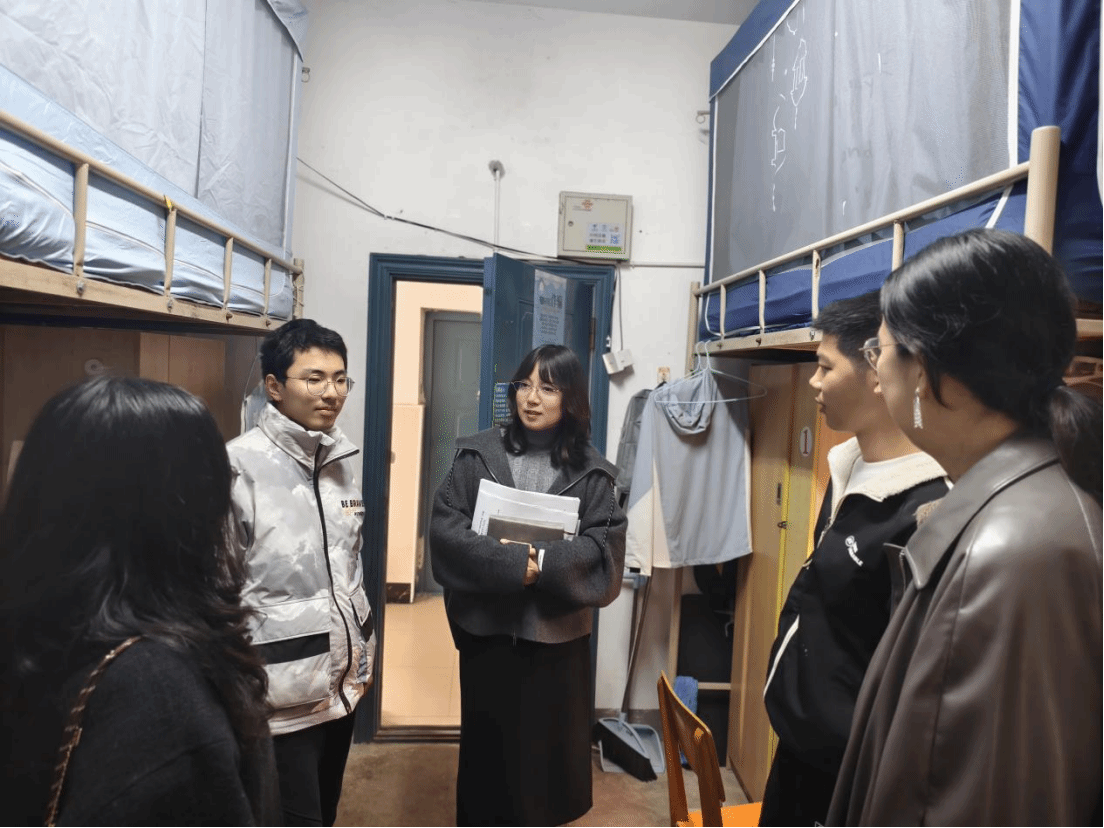 会后,胡丹蕾带领全体班主任与辅导员一同走访2025级学生宿舍,深入了解学生返校后的学习生活状态、适应情况与实际困难,进一步拉近了师生距离,传递了学院的关怀与温暖。
