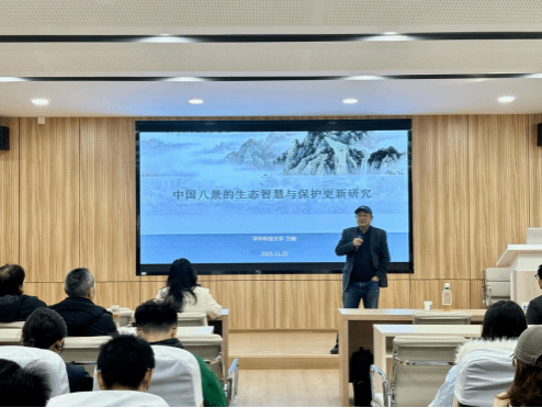2025年11月25日,华中科技大学万敏教授应邀做客为我院作题为“中国八景的生态智慧与保护传承”的学术报告。本次报告举行地点在黄家湖校区教52302报告厅,由建筑与规划系系主任徐虹教授主持,报告吸引了我校多院系师生参与。