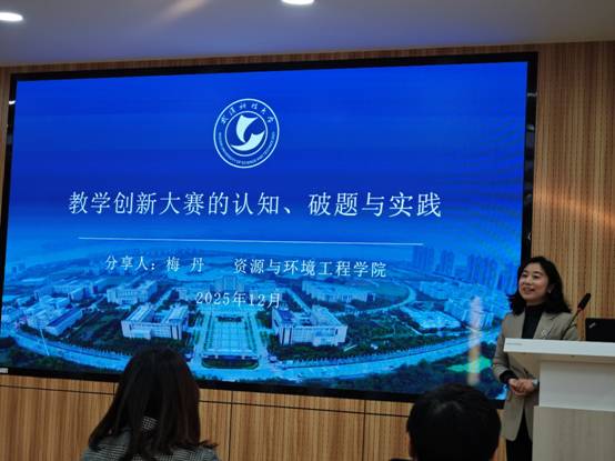 梅丹教授以《教学创新大赛的认知、破题与实践》为题,分别从“认知破局——从‘功利参赛’到‘以赛促教’”、“精准破题——用‘故事逻辑’讲好教学创新”、“材料解题——用严谨体现教学‘真实’”、“现场答题——用‘共情’传递教学温度”等方面分享她在参加国家级和省级教师教学创新大赛时的经验与体会。梅丹教授的报告内容丰富、逻辑严密、讲解清晰、细节生动,在现场引起了热烈反响。与会老师们表示,报告既有理论高度,又具实操价值,特别是“从‘功利参赛’到‘以赛促教’”的理念突破,以及用“故事逻辑”构建教学创新叙事的方法,为正在准备各类教学竞赛的教师提供了清晰的路径指引。